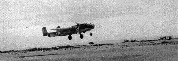This amazing photo comes from Dominique Taddei who got it from John Sutay, former 57th Bomb Wing Historian, who passed away on May 31, 2002. In Corsica, John Sutay was a radio ground operator in the 340th BG, 486th BS. The photo was taken above Mount Vesuvius in May 1945. The B-25J pictured, "Finito Benito Next Hirohito," was neither assigned to a BG nor flew combat missions but was based at Naples with the 12th Air Force around the end of the war.