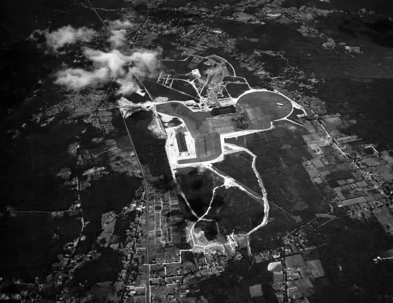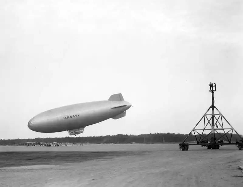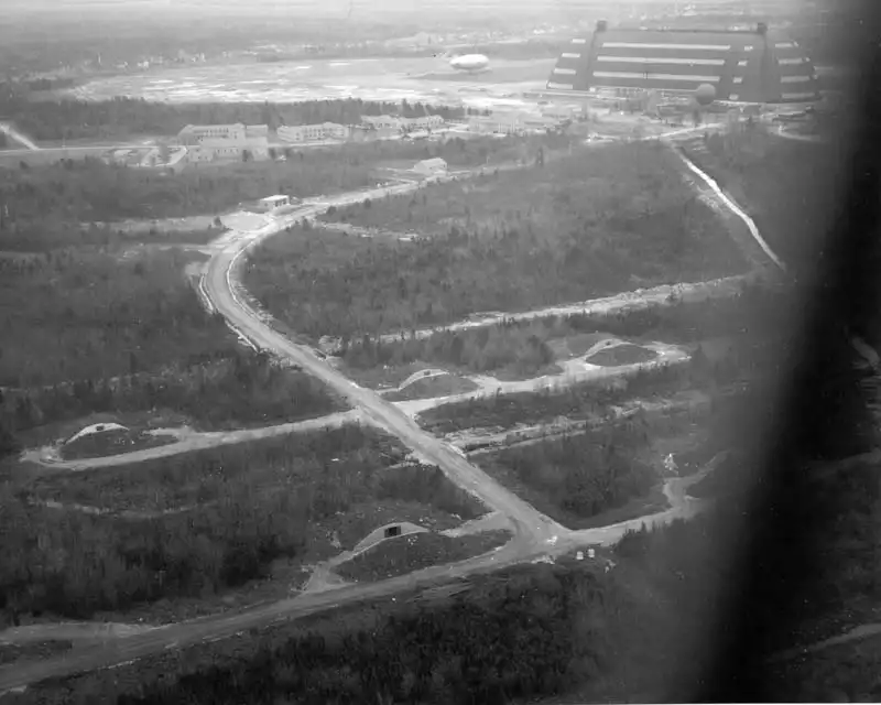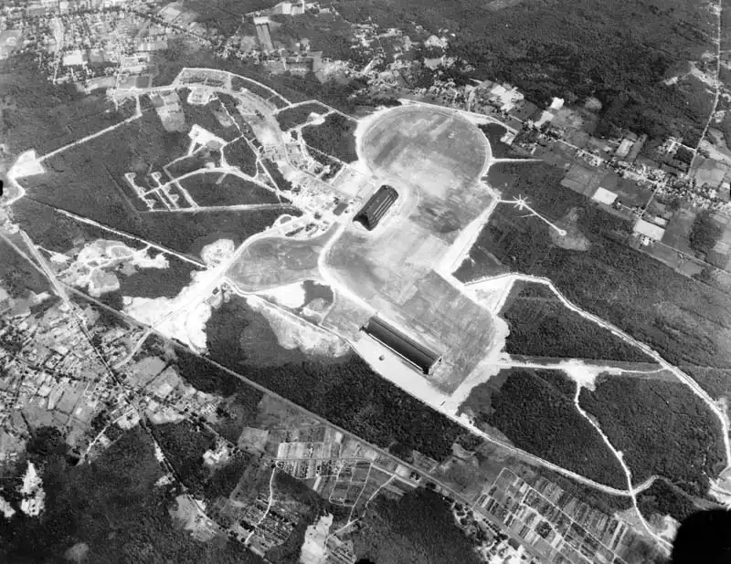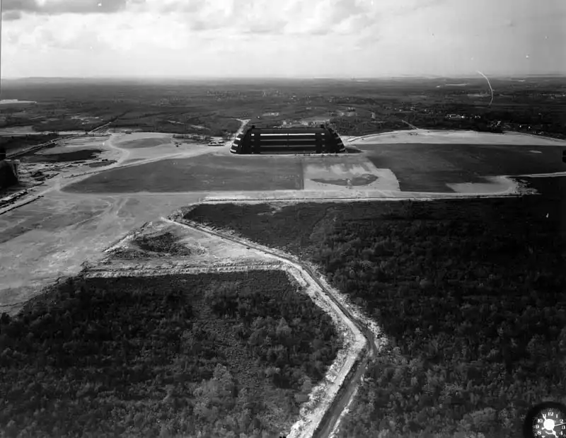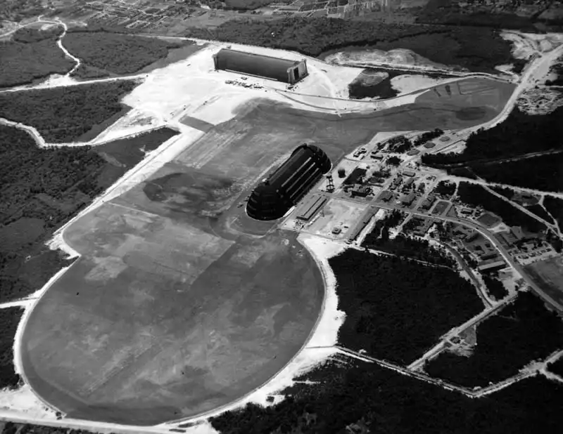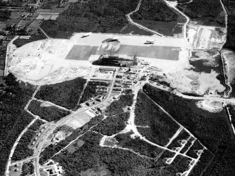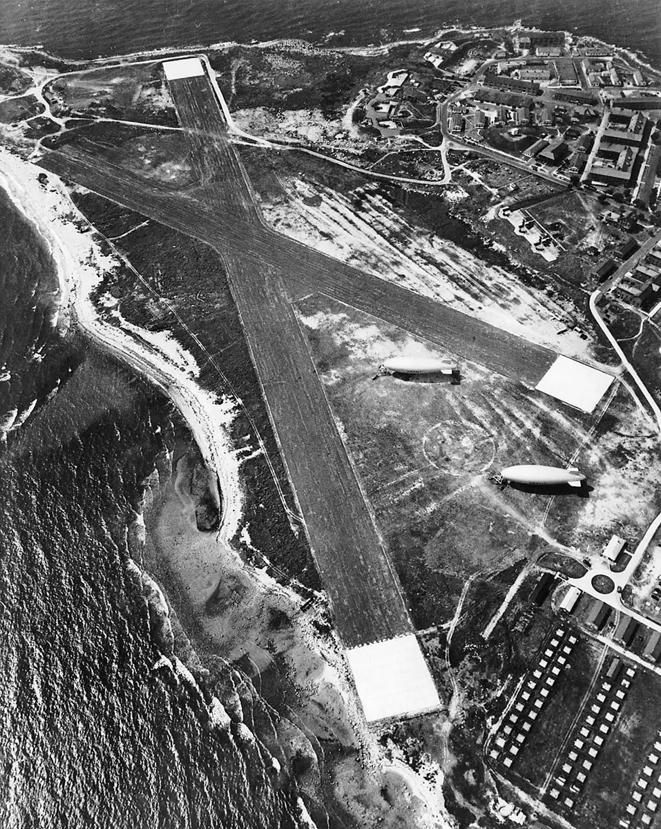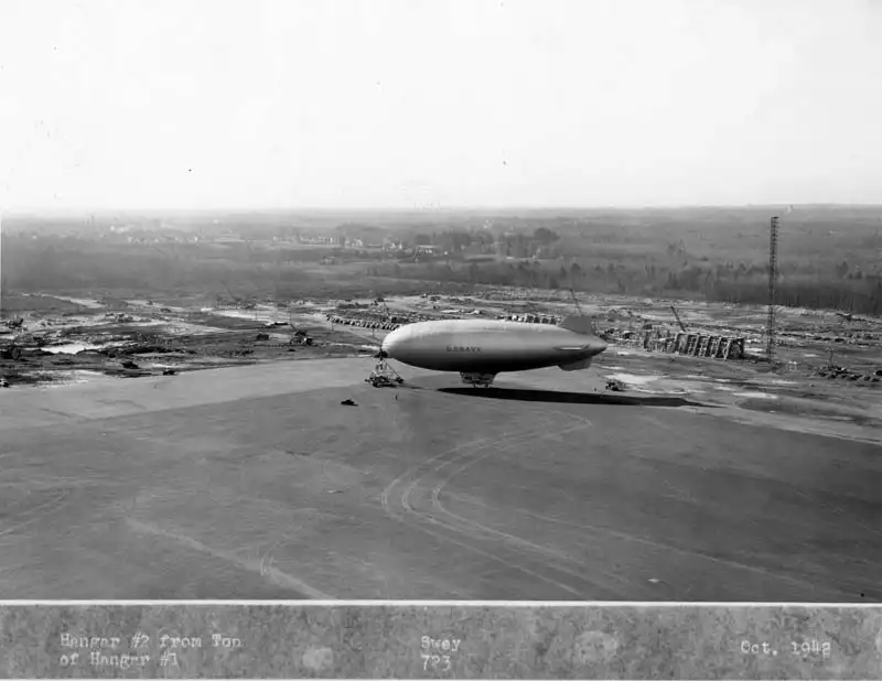 Aerial view looking north from hangar area September 24, 1942Aerial view looking north September 24, 1942Aerial view looking northeast September 24, 1942Aerial view looking northwest September 24, 1942Aerial view looking south September 24, 1942Aerial view looking southeast September 24, 1942Aerial view wooking west from hangar area September 24, 1942Landing area blimp and Hangar 1 looking north September 24, 1942Aerial view looking east October 2, 1942Aerial view looking north October 2, 1942Aerial view looking south October 2, 1942K-Ships on field October 1942Airships secured during storm September 27, 1942K-11 being secured during storm September 27, 1942Blimp landing October 2, 1942Barracks A September 1, 1942Barracks B September 1, 1942Blimp moored near Hangar 2 construction site October 1942K-11 riding mast during storm September 27, 1942Moored blimp October 2, 1942Hangar 1 under construction November 27, 1942Early ZP-11 insignia October 2, 1942K-11 being secured during storm September 27, 1942