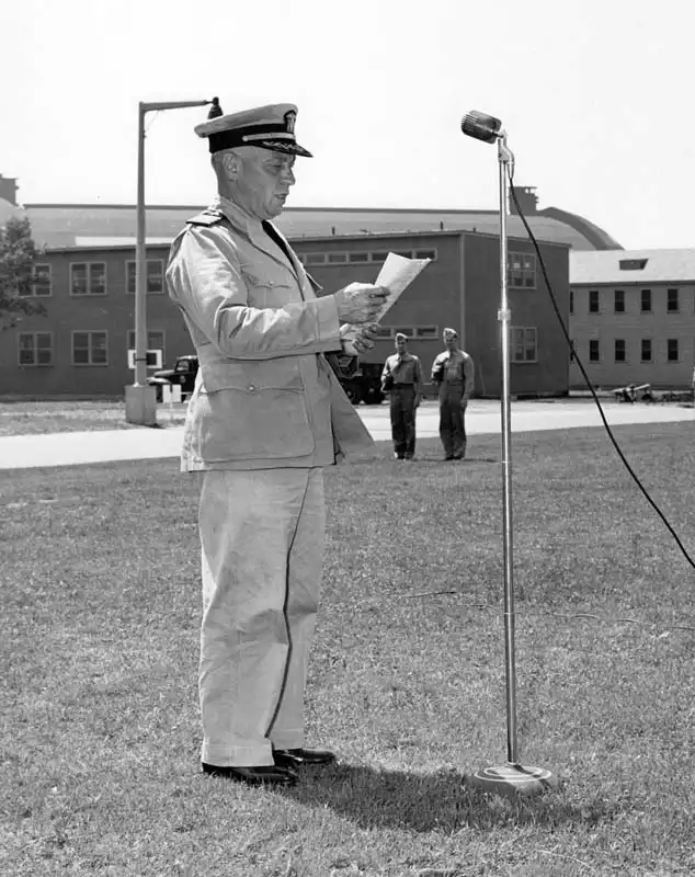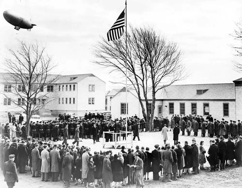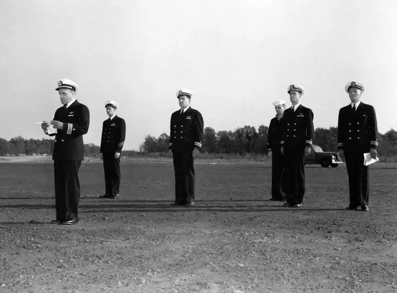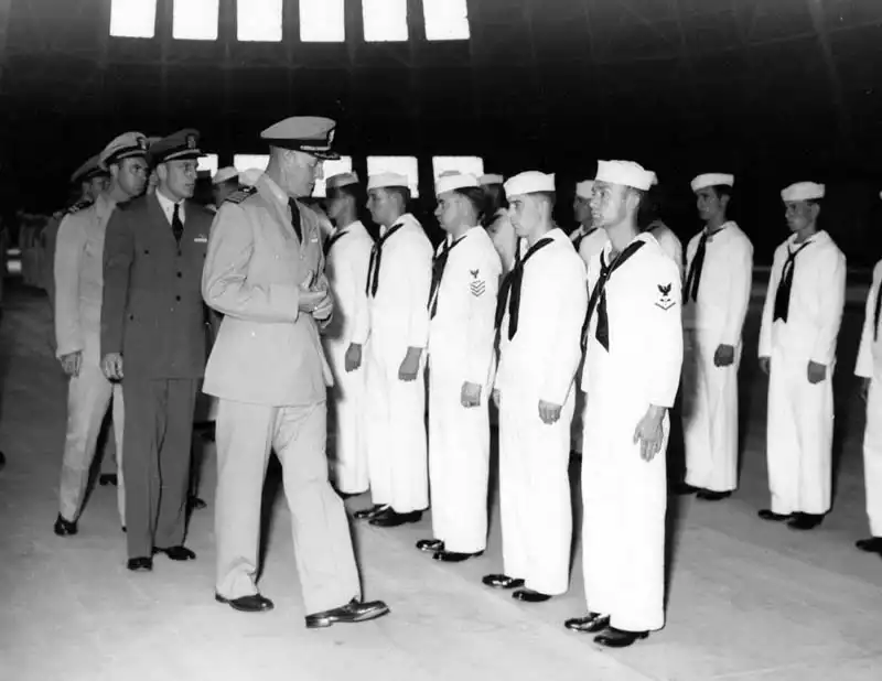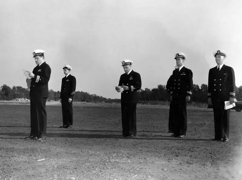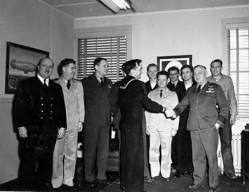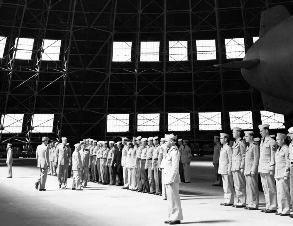 ADM Rosendahl and staff visit SoWey July 29, 1943CDR Mills reads orders to first ZP-11 CO June 2, 1942ZP-11 Commissioning CDR Mills Center June 2, 1942CAPT Frederick C Sachse leaving SoWey May 11, 1943LCDR Oscar E Loeser March 10, 1943VADM Adolphus Andrews with CAPT Fisher as host dines at SoWey OCLub September 2, 1943VADM Leary and staff inspection tour December 8, 1943ADM Rosendahl and staff visit SoWey May 8, 1944CAPT Tyler of NAS Lakehurst presenting Letter of Commendation to LT McGrath of SoWey September 10CAPT Tyler visiting base CAPT James L Fisher at right June 5, 1944CDR Herbert S Horn and LCDR Robert J Antrim in Horns office May 25, 1944CDR Herbert S Horn CAPT James L Fisher LCDR Robert J Antrim in Fishers office May 25, 1944LT Patrick Doyle CO of HedronCDR Matthew Furman MC welcomes Dr Bernice Rosenthal to SoWey May 15, 1944Change of Command Ceremony LCDR Bolan relieved by LCDR Pear October 31, 1944Change Of Command LCDR Bolan reads remarks October 31, 1944Change Of Command LCDR Pear reads his orders October 31, 1944Communications Officer LCDR Walter Pilsbury May 11, 1944HEDRON OINC LCDR Robert J Antrim May 9, 1944LCDR Pear presenting 200 Dollar Suggestion Award to Patrick Barry Leading Power Plant EngineerIntelligence Officer LCDR J S Lane and staff May 1, 1944LCDR Donald J OMeara May 9, 1944LCDR Herbert E Horn February 23, 1944LCDR Joseph Burns May 11, 1944LT OMeira and LCD Marion H Eapps CO of ZUTRON April 26, 1944SeeBee Vice Admiral Marreell visits SoWey CAPT Fisher at left October 17, 1944LCDR Bruno Varnagaris January 1, 1945LCDR Pear greeting CAPT Tyler on inspection visit March 17, 1945LCDR Pear greeting CDR Mills on inspection visit March 17, 1945John L Sullivan arriving June 5, 1945LCDR John F Pear relieves CAPT James L Fisher July 17, 1945NAF XO LCDR R T Connor September 9, 1945