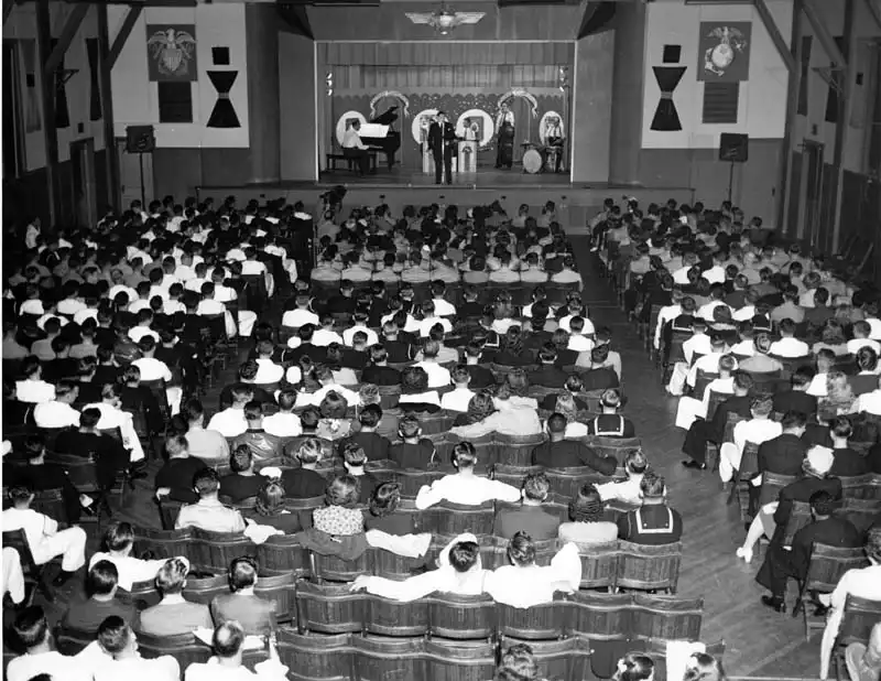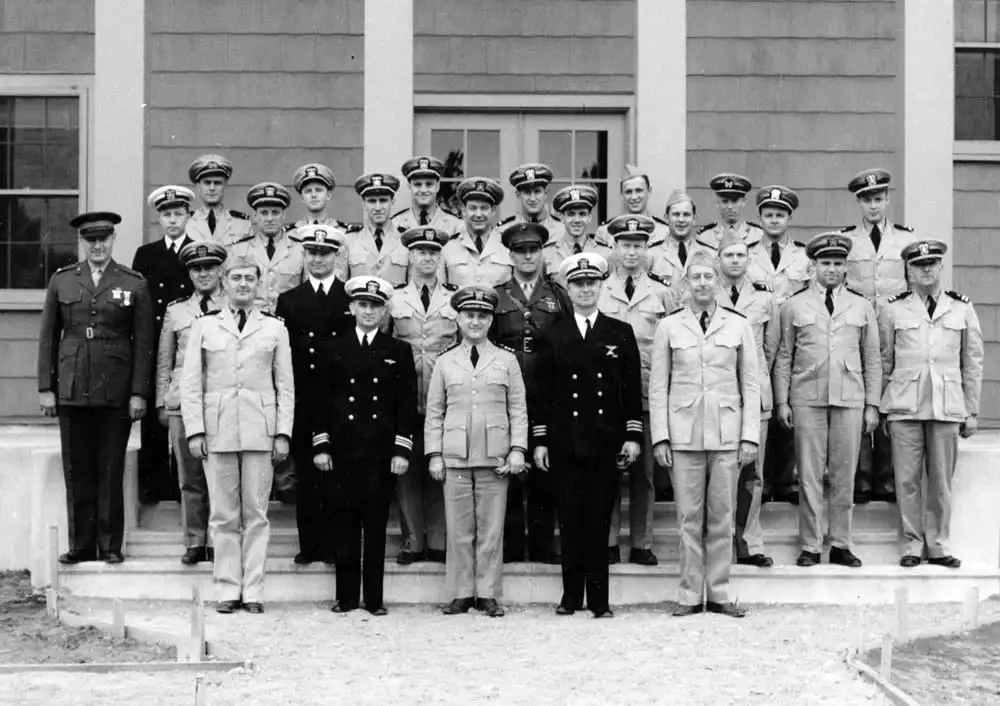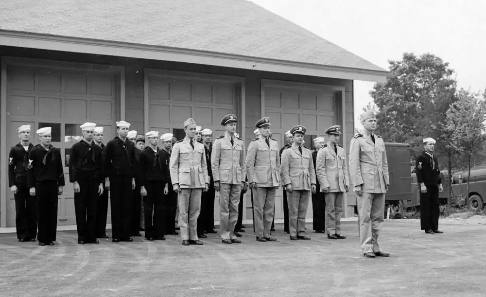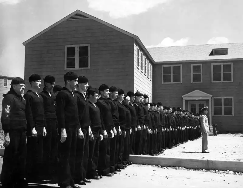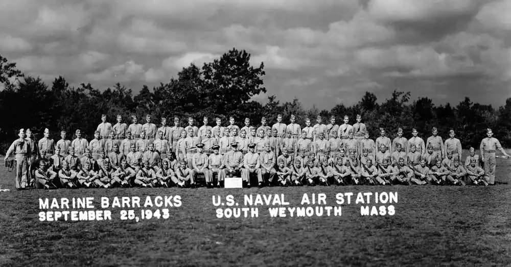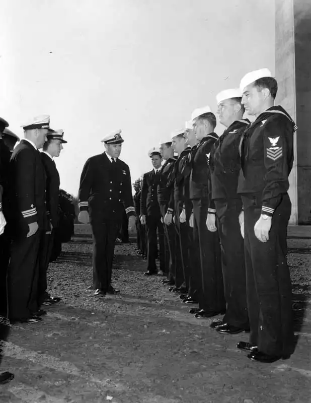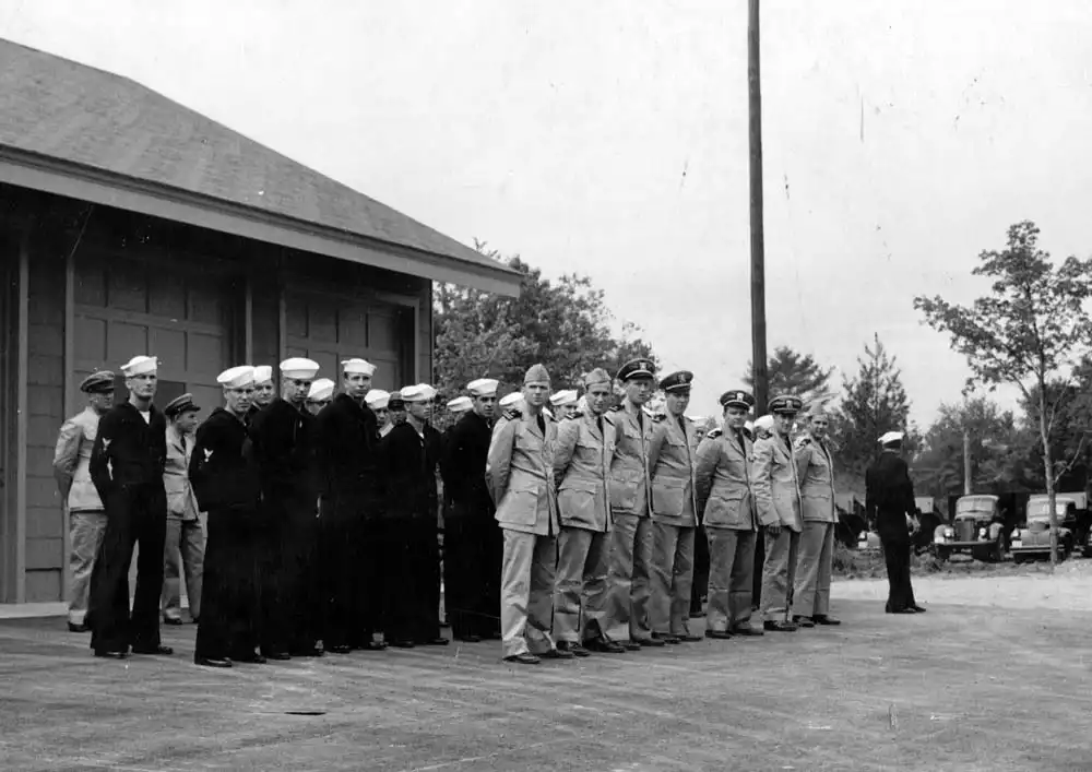 Marine Barracks September 25, 1943Marine Change of Command December 4, 1943Marine Barracks August 15, 1944CAPT James L Fisher reading his orders June 21, 1943CAPT Fisher presenting Legion Of Merit to BM2c William A Garratt October 16, 1943Maj D J Tenny May 25, 1944CAPT Fisher presents citation at inspection to YN2c David Kaplan March 10, 1945Maj Rockwell presenting Purple Hearts to injured Marines February 3, 1945Maj Rockwell presenting Purple Heart to PFC John Wright March 26, 1945Maj Rockwell presenting Bronze Star to PFC M F Flaherty snd Purple Heart to PFC A J Lepere AprilCAPT Fisher being piped off station July 18, 1945Col Allen Shapely and Capt Wolczak inspect Marines at SoWey September 12, 1945USCG Guards July 30, 1945