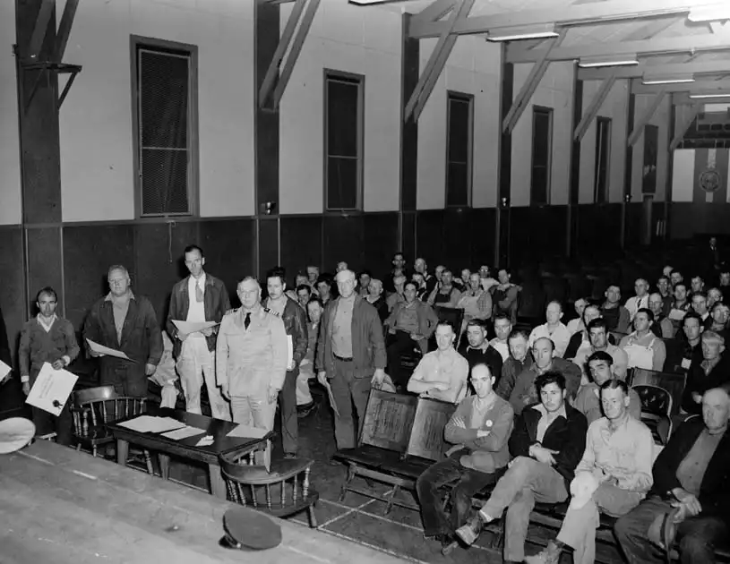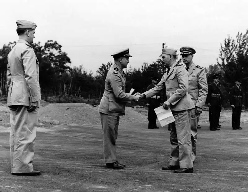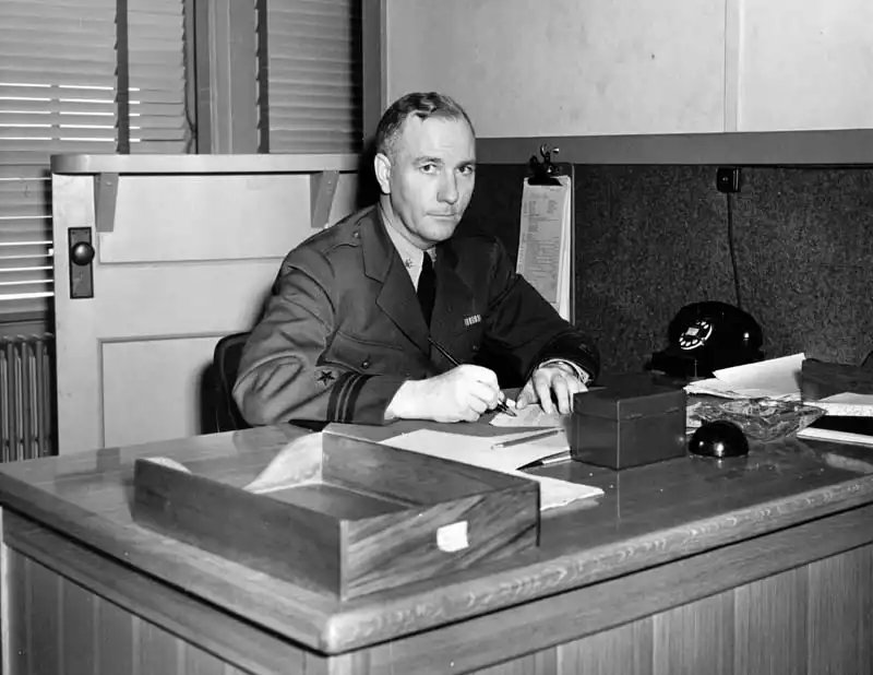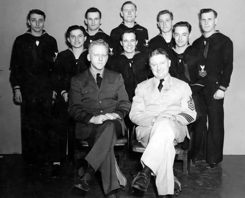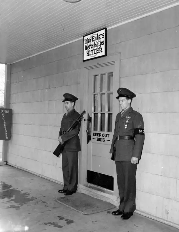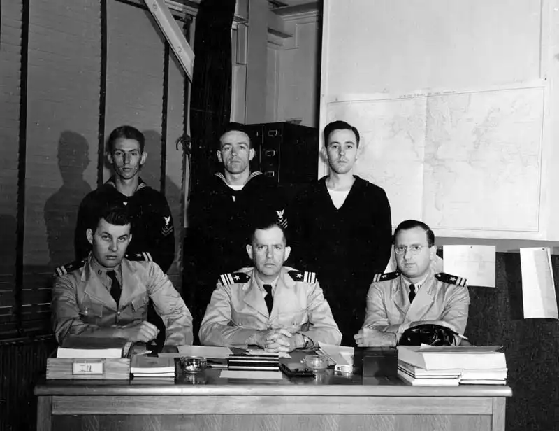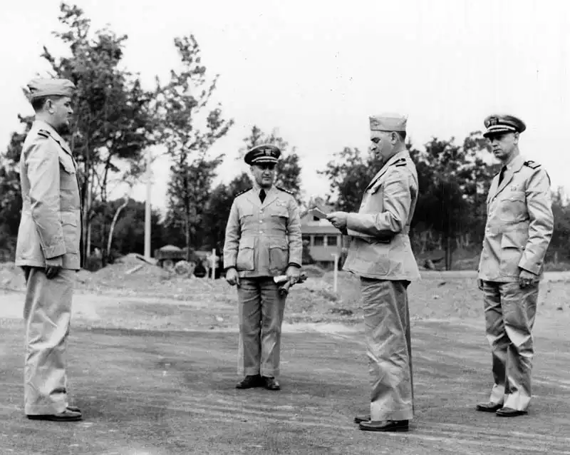 Marine Barracks September 25, 1943Marine Change of Command December 4, 1943Marine Barracks August 15, 1944CAPT James L Fisher reading his orders June 21, 1943CAPT Fisher presenting Legion Of Merit to BM2c William A Garratt October 16, 1943Maj D J Tenny May 25, 1944CAPT Fisher presents citation at inspection to YN2c David Kaplan March 10, 1945Maj Rockwell presenting Purple Hearts to injured Marines February 3, 1945Maj Rockwell presenting Purple Heart to PFC John Wright March 26, 1945Maj Rockwell presenting Bronze Star to PFC M F Flaherty snd Purple Heart to PFC A J Lepere AprilCAPT Fisher being piped off station July 18, 1945Col Allen Shapely and Capt Wolczak inspect Marines at SoWey September 12, 1945USCG Guards July 30, 1945