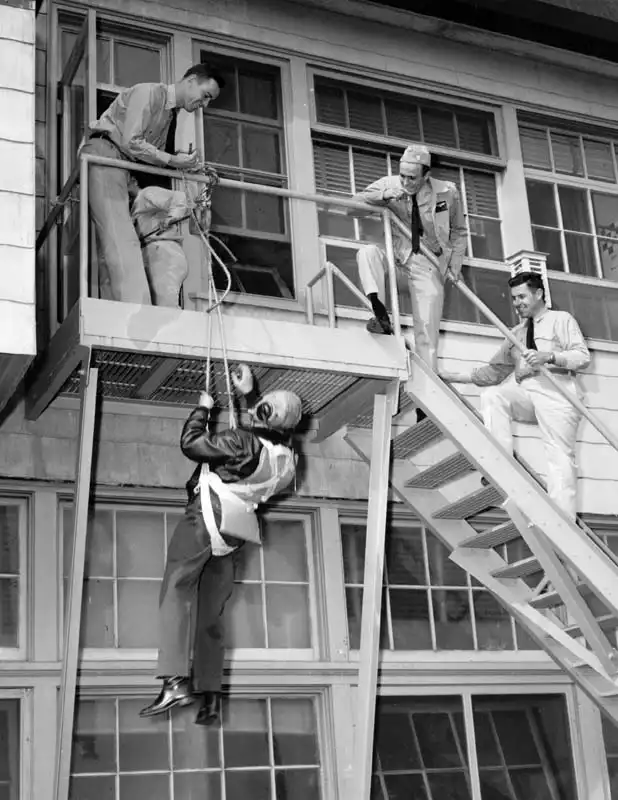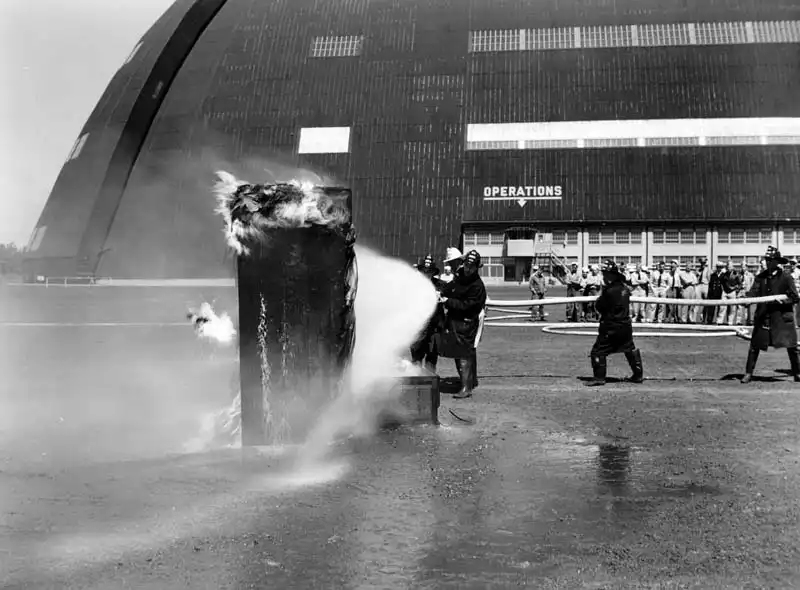 Fire Department August 5, 1943Display of fire fighting equipment in front of Hangar 2 December 20, 1943Fire fighting test Hangar 2 February 25, 1944High pressure fire main test at Hangar 2 March 29, 1944High pressure fire main test at Hangar 2 April 18, 1945High pressure fire main test at Hangar 2 April 18, 1945Fire drill August 8, 1944Fire drill in Hangar 1 September 26, 1944SoWey fire fighting school July 10, 1945New high pressure water gun at Hangar 1 August 18, 1943
