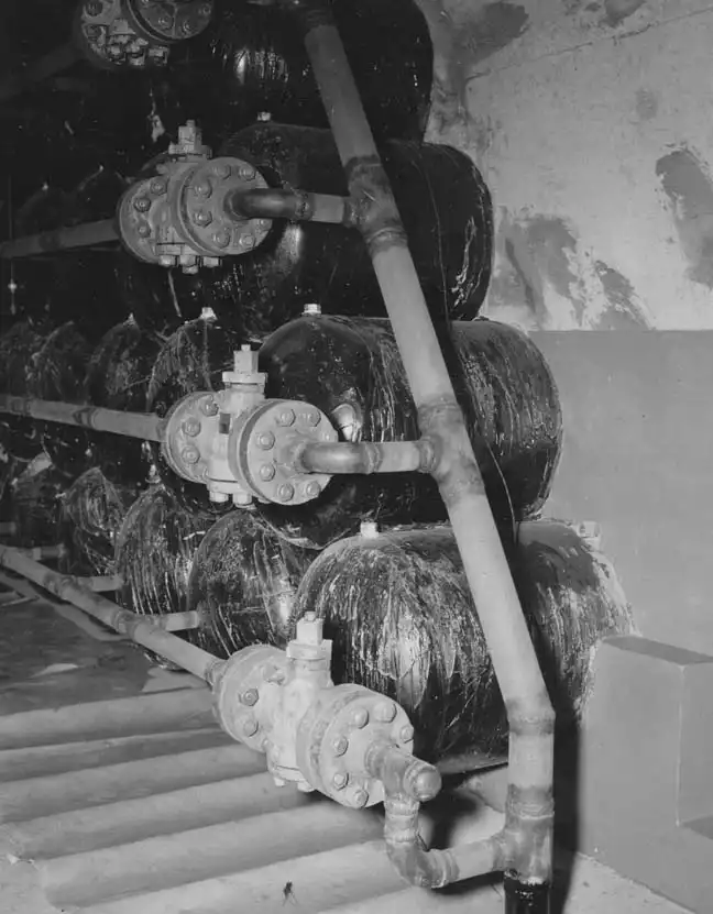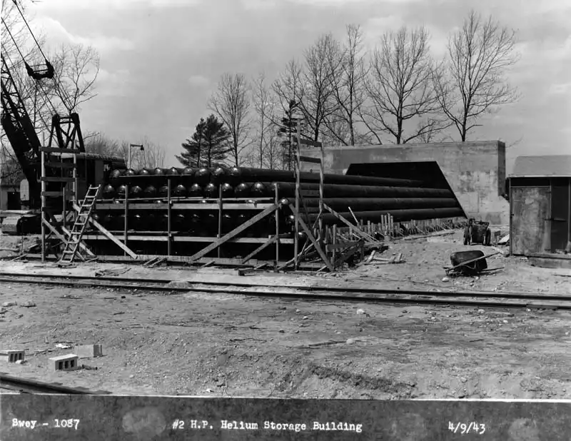 High pressure helium storage building 2 April 9, 1943Helium Plant August 24, 1943Interior of Helium Plant and Power House November 16, 1945Helium storage August 20, 1943Helium storage August 20, 1943