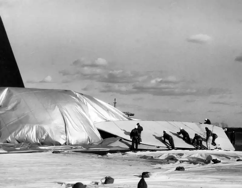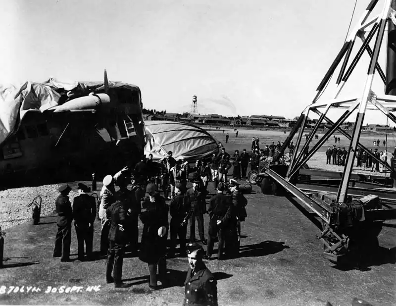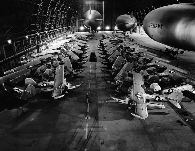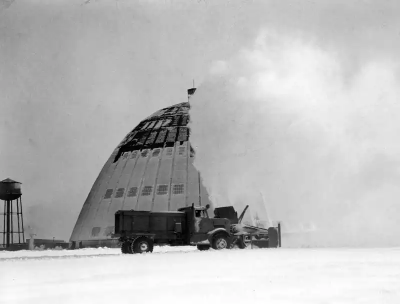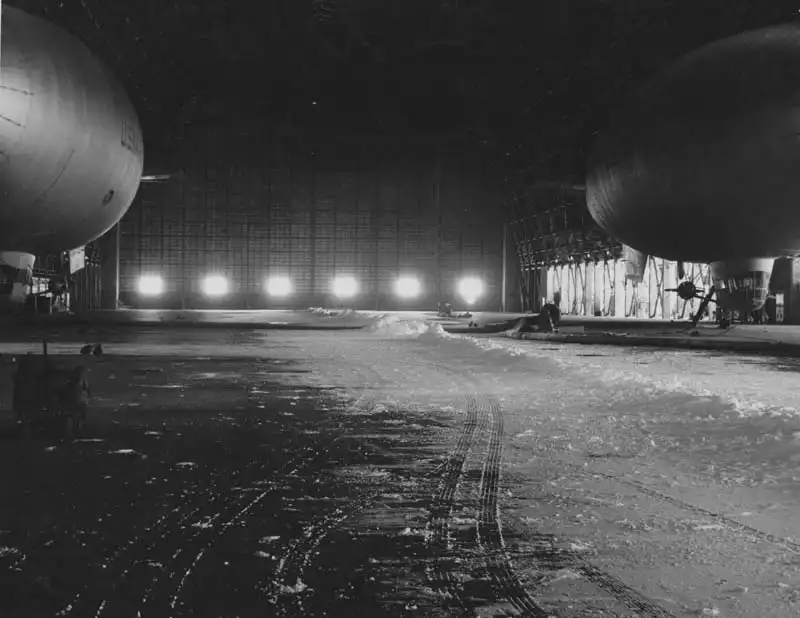 Blimps docked inside Hangar 1 January 7, 1944Blimp repairs inside Hangar 1 January 7, 1944Blimp repairs inside Hangar 1 January 7, 1944Hangar 1 September 12, 1944Hangar 1 September 12, 1944Hangar 2 September 12, 1944Door mechanism at Hangar 1 October 4, 1944Control Tower on_top of Hangar 1 December 14, 1944Control Tower on_top of Hangar 1 December 14, 1944Control Tower on_top of Hangar 1 December 14, 1944Compacting snow in front of Hangar 2 after heavy snowfall February 16, 1945Damage to Hangar 2 after heavy snowfall February 16, 1945Damage to Hangar 2 after heavy snowfall February 16, 1945Aircraft Storage Hangar 2 April 17, 1945Aircraft Storage Hangar 2 April 17, 1945Aircraft Storage Hangar 2 April 17, 1945 North EndAircraft Storage Hangar 2 April 17, 1945 South EndHangar 2 hurricane storage June 27, 1945