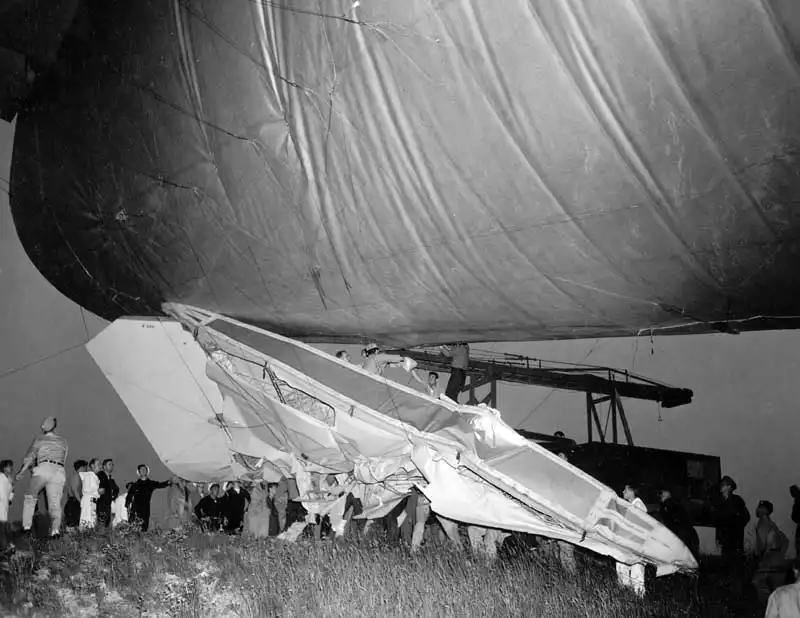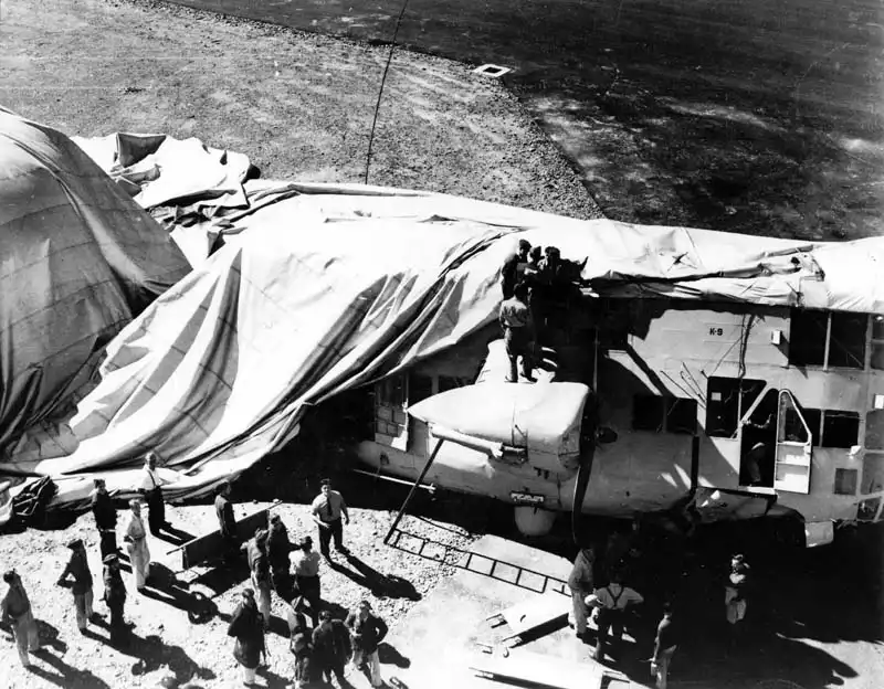 The K-9 blimp crashed on July 7, 1944. On October 2, 1945, it deflated at Yarmouth, Nova Scotia while trying to land in high winds with an inexperienced ground crew.