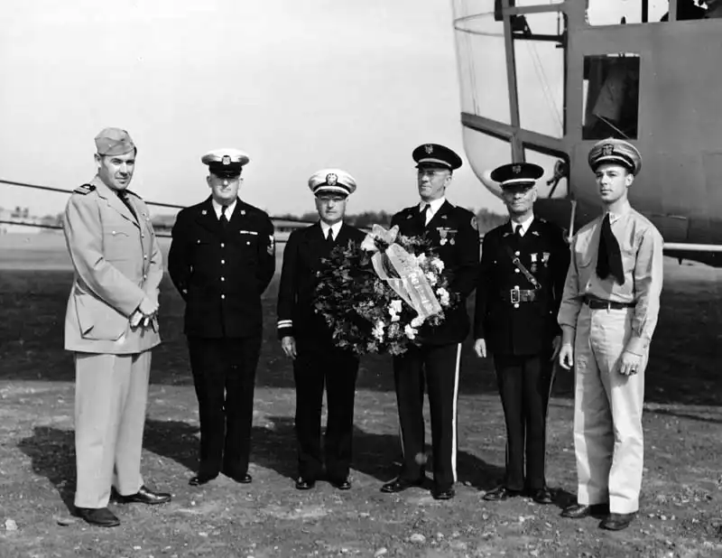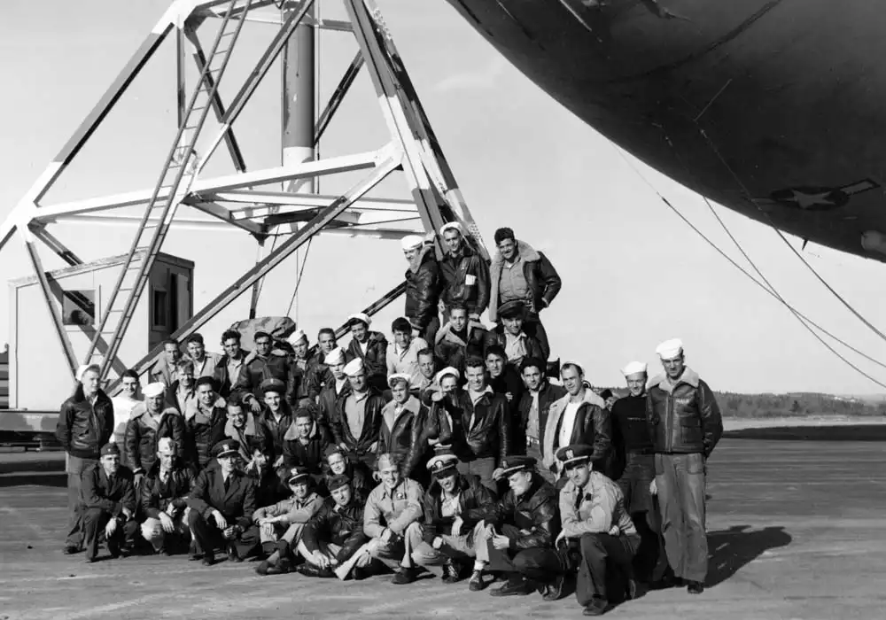 CAPT Frederick C Sachse and men around blimp engine February 14, 1943RADM Robert A Theobald 1st Anniversary Inspection March 1, 1943ZP-11 Inspection September 13, 1943LTA Class November 22, 1943Art Editor of Weymouth blimp departs station Decmber 17, 1943Dispensary Staff November 2, 1944HEDRON Engineering Crew August 30, 1944LTJG Grant B Southward June 10, 1944LTJG Connolly June 28, 1943PHm3c Maella M Landry in destist office February 26, 1944LCDR Bolam inspecting ships company October 31, 1944Presentation of GC medals and aircrew wings to HEDRON Personnel June 24, 1944Presentation of GC medals and aircrew wings to HEDRON Personnel June 24, 1944LT John C OMalley May 25, 1944Photographic officer and staff February 24, 1944Presentation of GC medals and aircrew wings to HEDRON Personnel June 24, 1944Presentation of safety award to civilian employees October 13, 1944RADM Richard Lansing MC visiting July 4, 1944CAPT Tyler of NAS Lakehurst Inspecting SoWey Hedron Personnel September 10, 1945War Bond pennant awarded to Disbursing Office March 25, 1945ZP-11 May 30, 1945