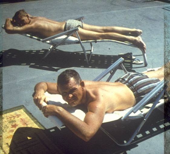 This photo show an Israeli recon aircraft orbiting USS Liberty in the morning hours of June 8, 1967.Crewmember observing Israeli reconnaissance aircraft prior to the attackExecutive Officer LCDR Philip Armstrong with chiefs Thompson, Lambert, Benkert and Smith before the attack. Armstrong and Smith died.Captain McGonagle sunbathing about an hour before the attackSunbathers - These are two of the men the pilots must have seen. In the foreground is our Executive Officer, Lieutenant Commander Philip Armstrong.