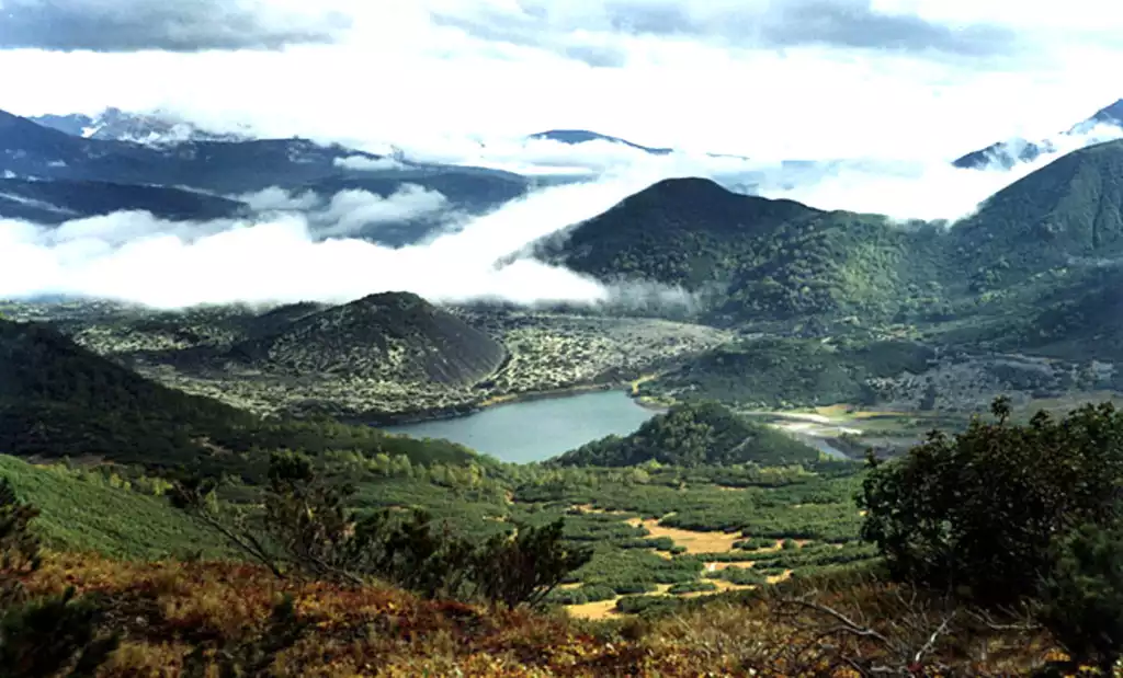 This 24x13 km caldera has these peaks: Mount Meakan, Akan-Fuji and Mount Oakan, all located around the rim of Lake Akan.